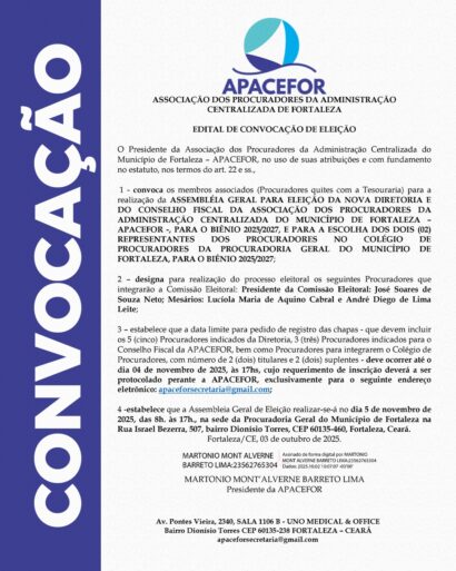 Convocação de Eleição – Biênio 2025/2027